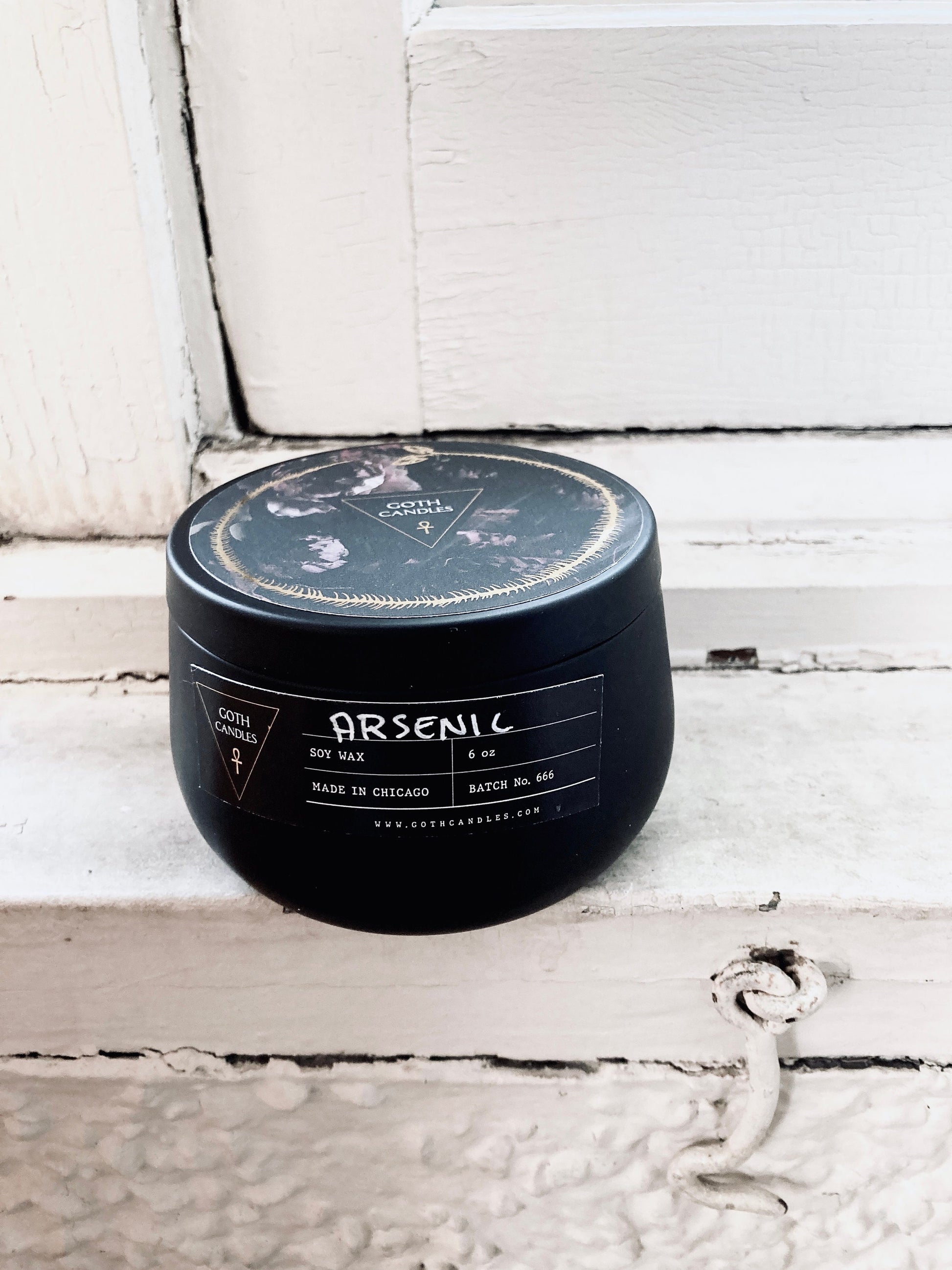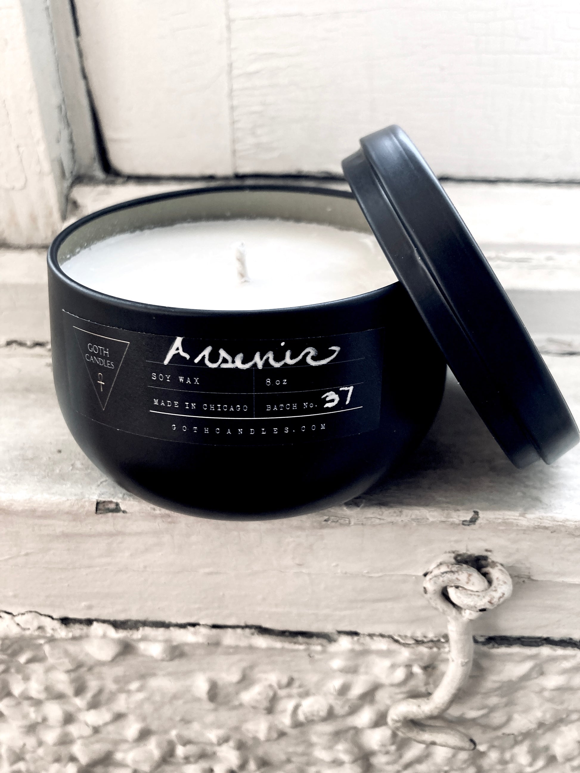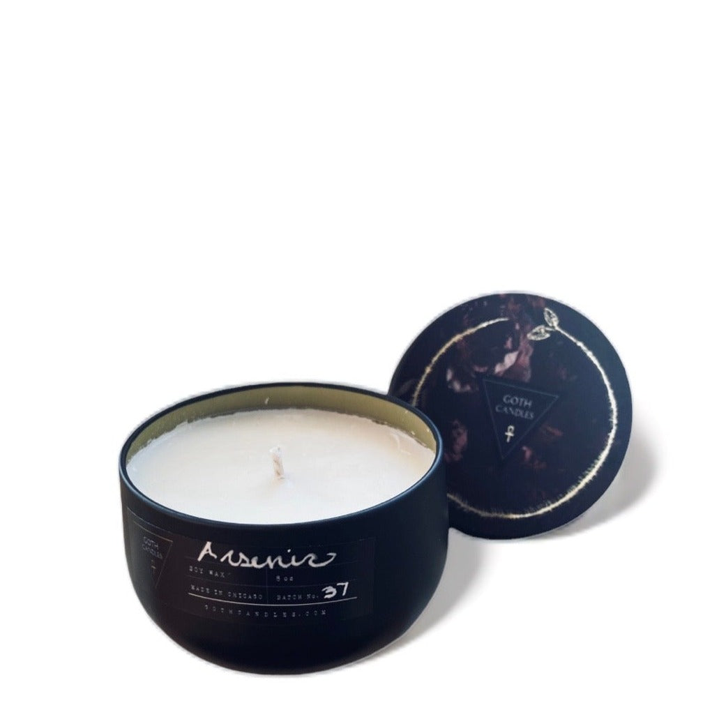 Almond | ARSENIC | Scented Goth Candle Soy | 8 oz Tin Vessel