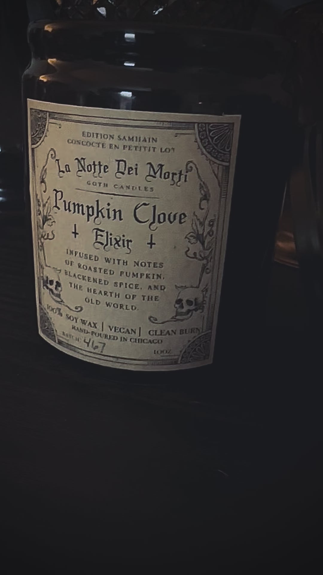 Pumpkin Clove Elixir Halloween Candle 10oz Black Soy Goth Candles