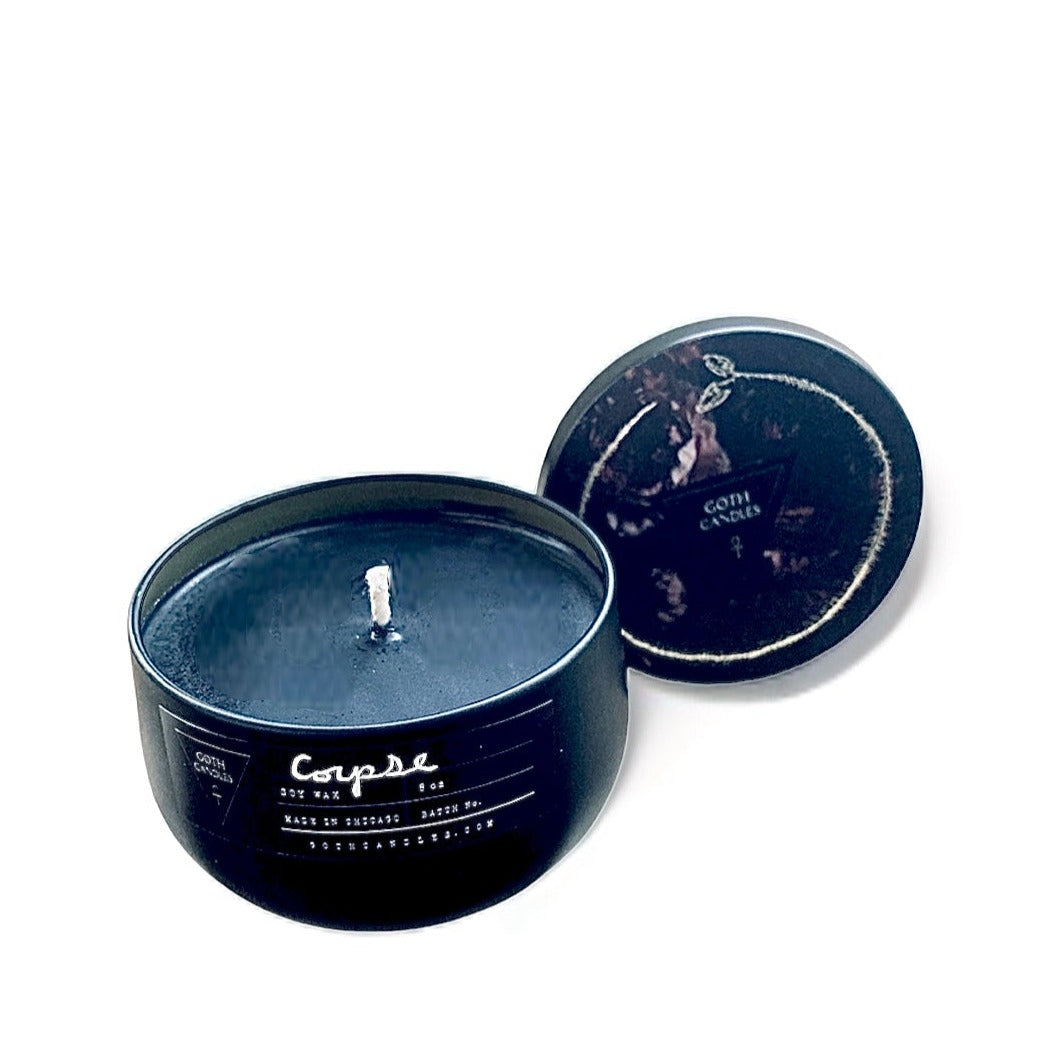 Real Dirt Scent | CORPSE | Goth Candles | Black Candle | Premium Soy Wax | Valentines Day Gift | 8 oz Tin | Dirt Candle