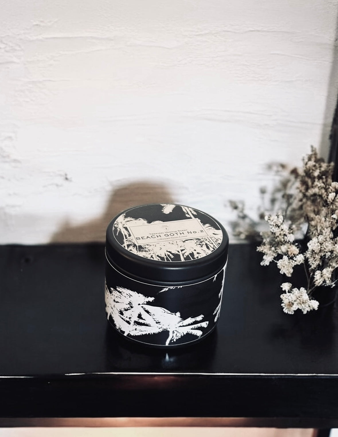 TRAVEL BEACH GOTH #2|Tropical Vanilla | Goth Candles | Summer Soy Black Candle | 4oz Tin Travel Vessel